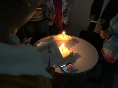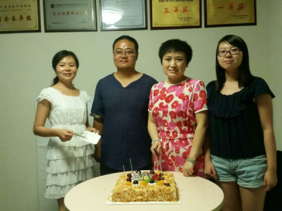 每月公司都会同本月过生日的同事一起吹蜡烛、切蛋糕,甜甜的蛋糕,摇曳的烛光,满满的全是祝福,祝大家生日快乐!天天开心!